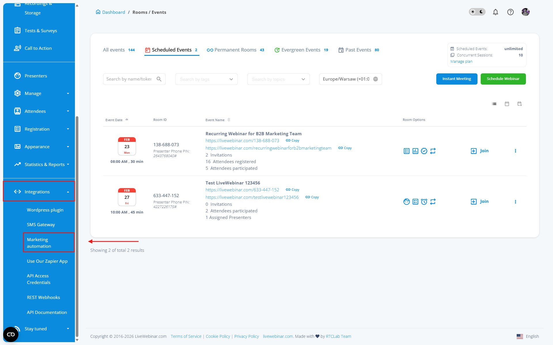 Ako integrovať LiveWebinar s Ecomail?
