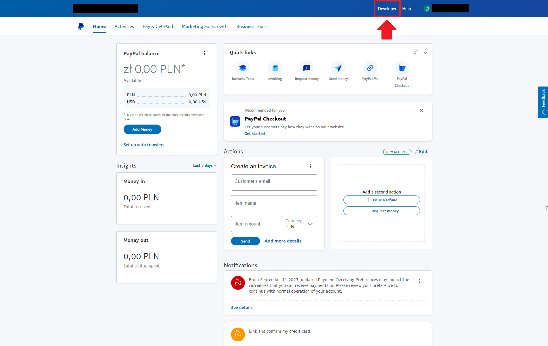 Next, select Developer Dashboard.