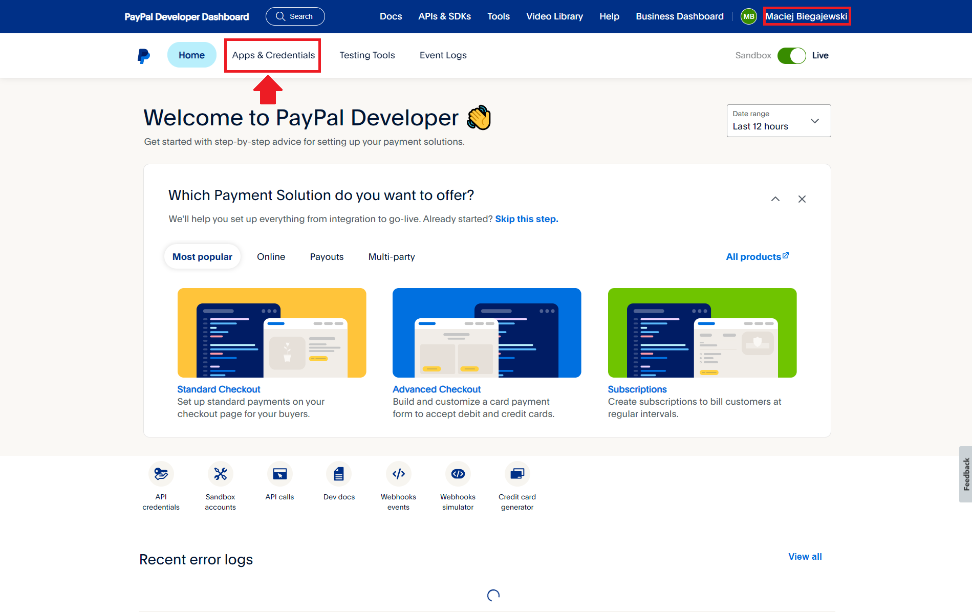 Go to the Apps & Credentials tab