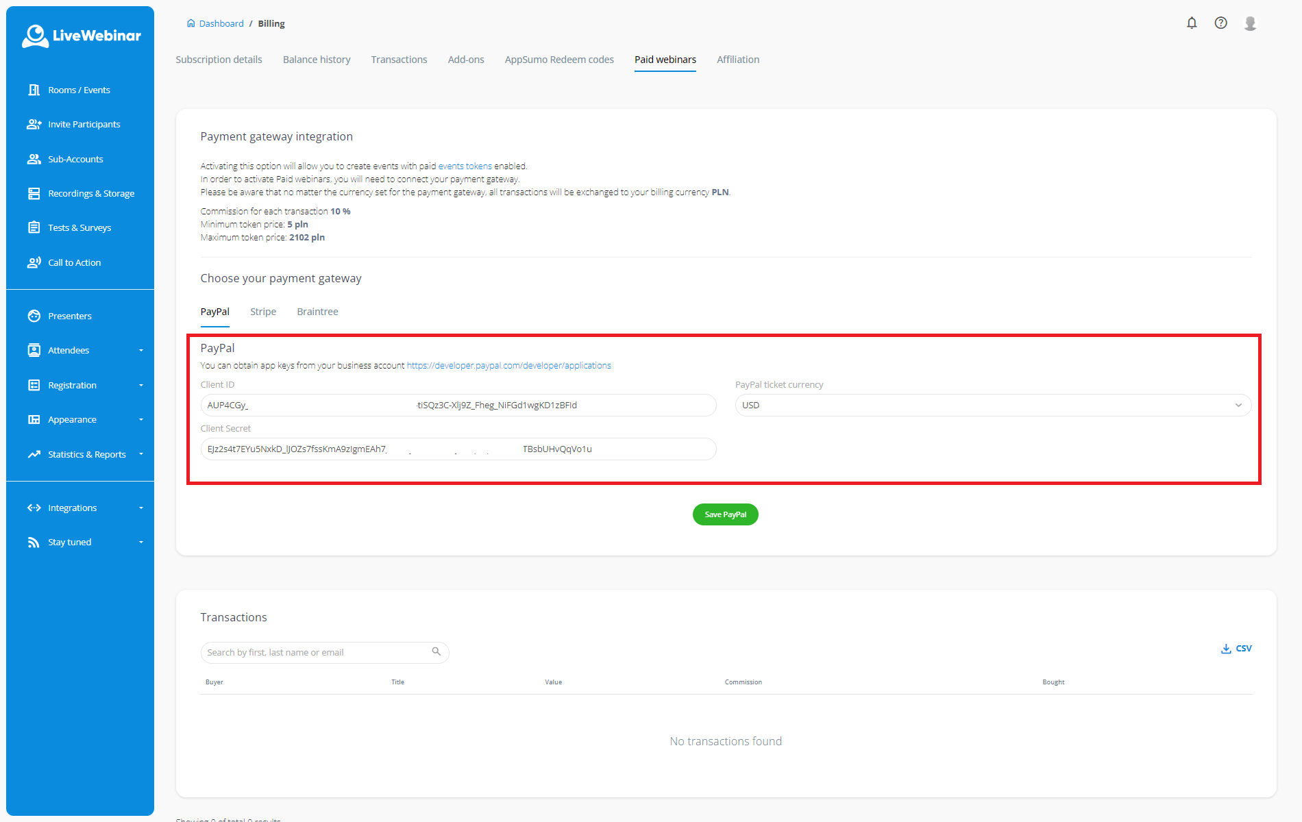 How to integrate LiveWebinar with PayPal?
