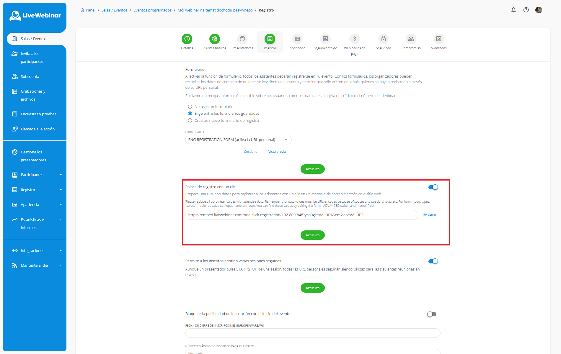 ¿Cómo crear y utilizar un enlace de registro con un solo clic?