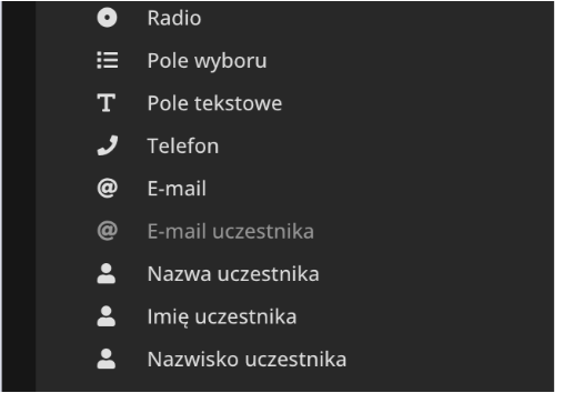 - Nazwisko (używając elementu Nazwisko uczestnika z bocznego paska elementów).