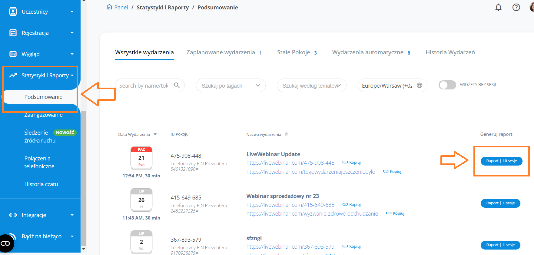 O tym, jak generować raporty z sesji przeczytaj więcej tutaj.