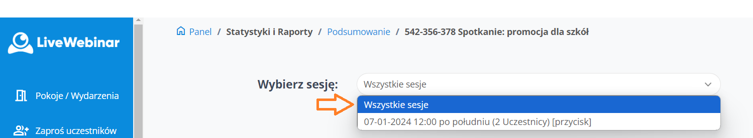 Należy bowiem pamiętać, że jedno wydarzenie może mieć wiele sesji. Każde wejście konta na pokój to osobna sesja.