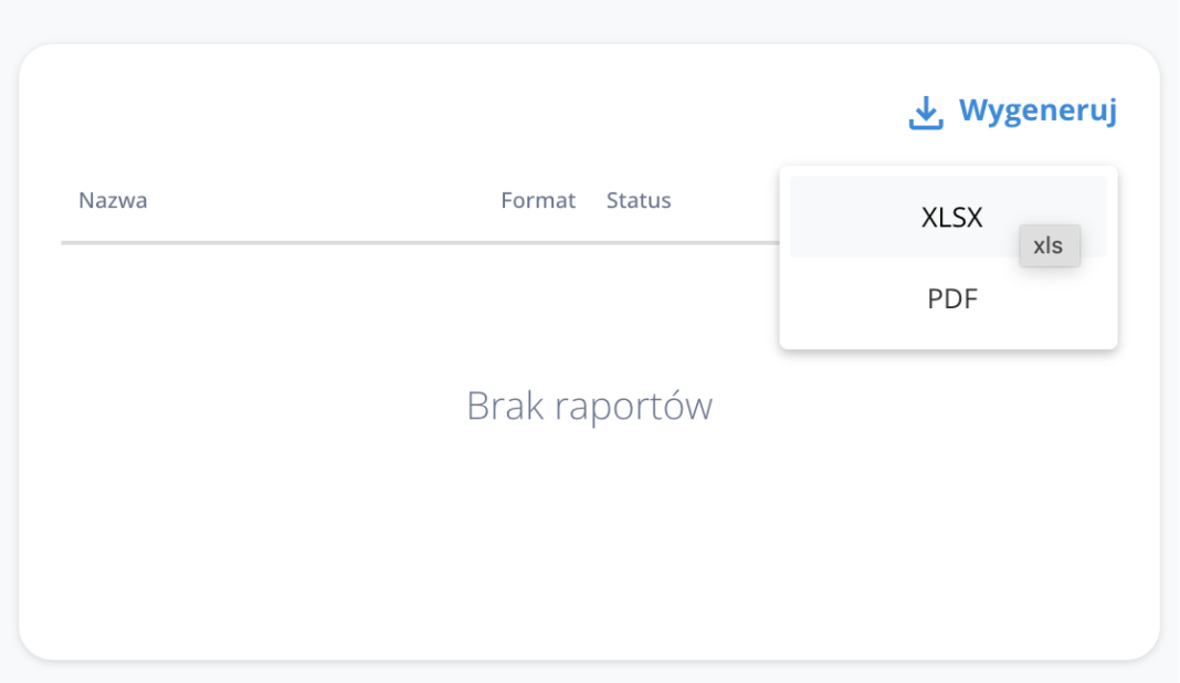 - Kliknij „Wygeneruj”. Można pobrać plik w formacie xlsx lub pdf, ale najlepiej pobrać format xlsx.