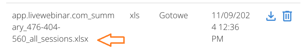 Zwróć uwagę, że raport ze wszystkich sesji różni się od innych wygenerowanych tym, że ma dopisek w nazwie all_sessions.xlsx.