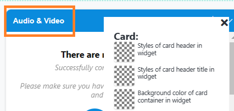 - Card: controls the colors of the window that contains the audio and video windows, participant’s list, chat and timer.