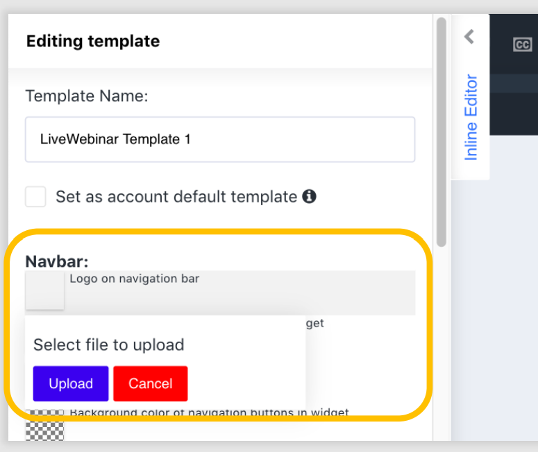 1. To add your own logo instead of LiveWebinar’s, open the branding tool and click “Logo on Navigation Bar”.