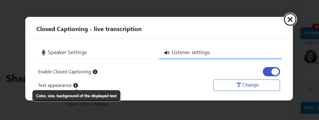 FAQ -> Live Transcription -> How do I start a live transcription as an attendee?