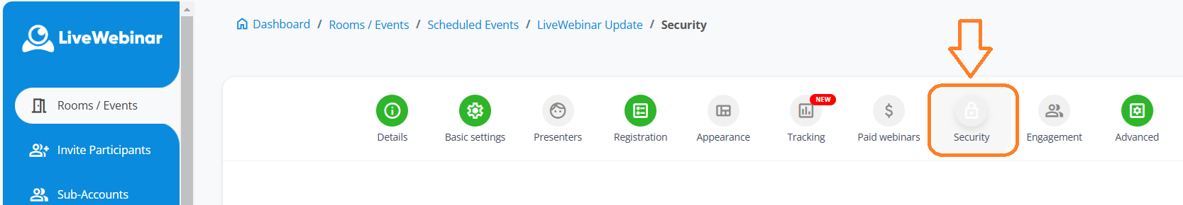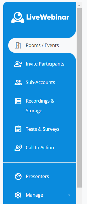 - Log in to your account’s dashboard and select “Rooms/Events”.