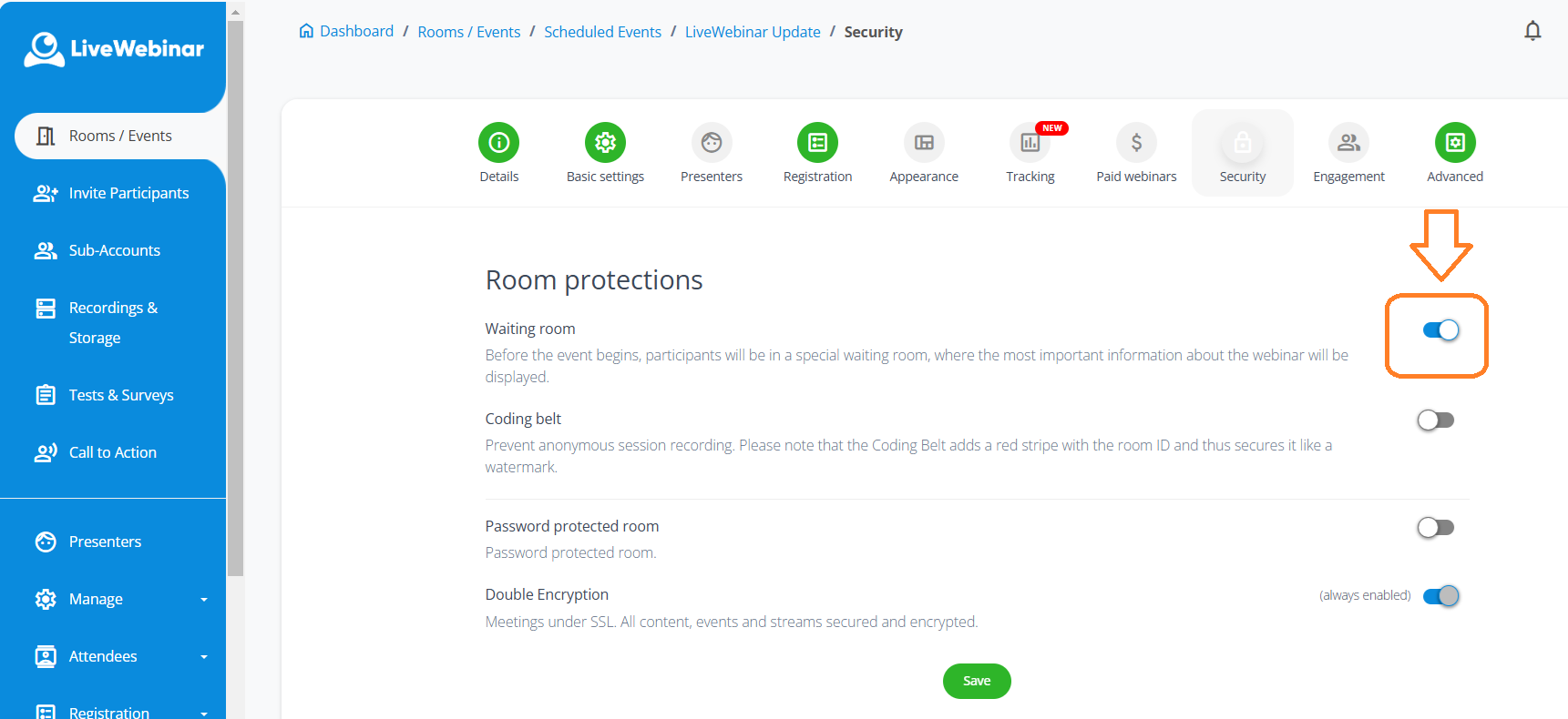 FAQ -> Waiting rooms -> How to Activate the Waiting Room