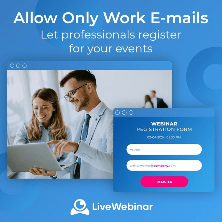 Expand your email list with the power of personalized webinars. Sign up for LiveWebinar now and start building your audience with a platform that enables easy engagement and conversion.