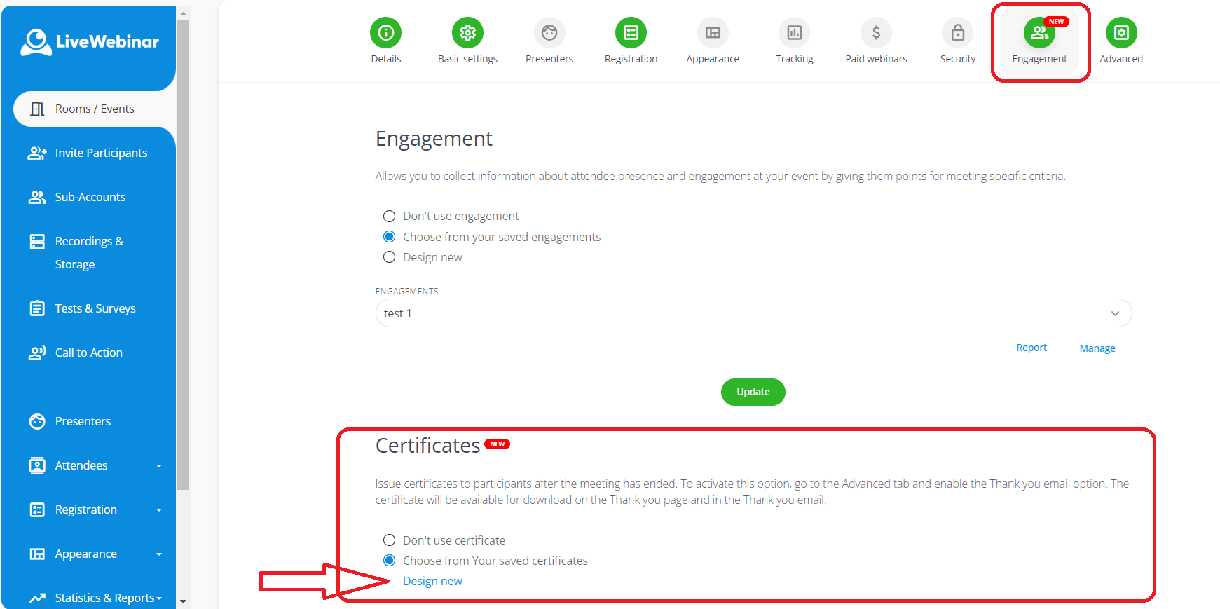 - Then go to the upper menu of your Event and choose “Engagement” tab.