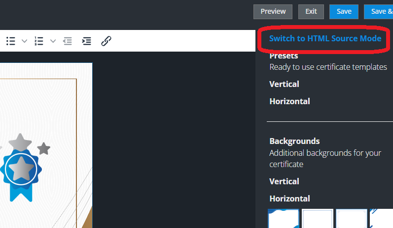- Open your event → go to Certificates and click Edit on the certificate you want to update.