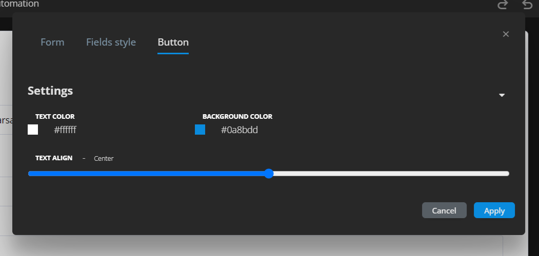Here you can choose the button text color and the button background color. You can also set the button text align: left, right or center.