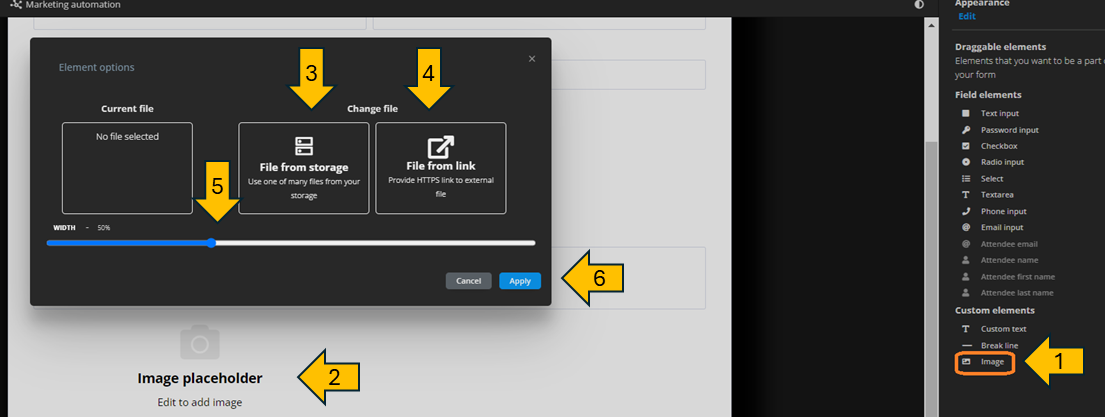 - Image placeholder – Drag and drop the element to the place where you want it to be in the form.