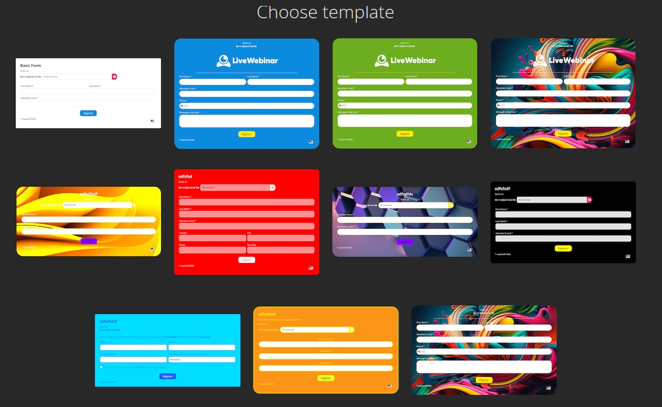 You will see the list of ready-made templates. Choose the one you like. For inspiration, go to our post with examples of registration forms generated with this tool.