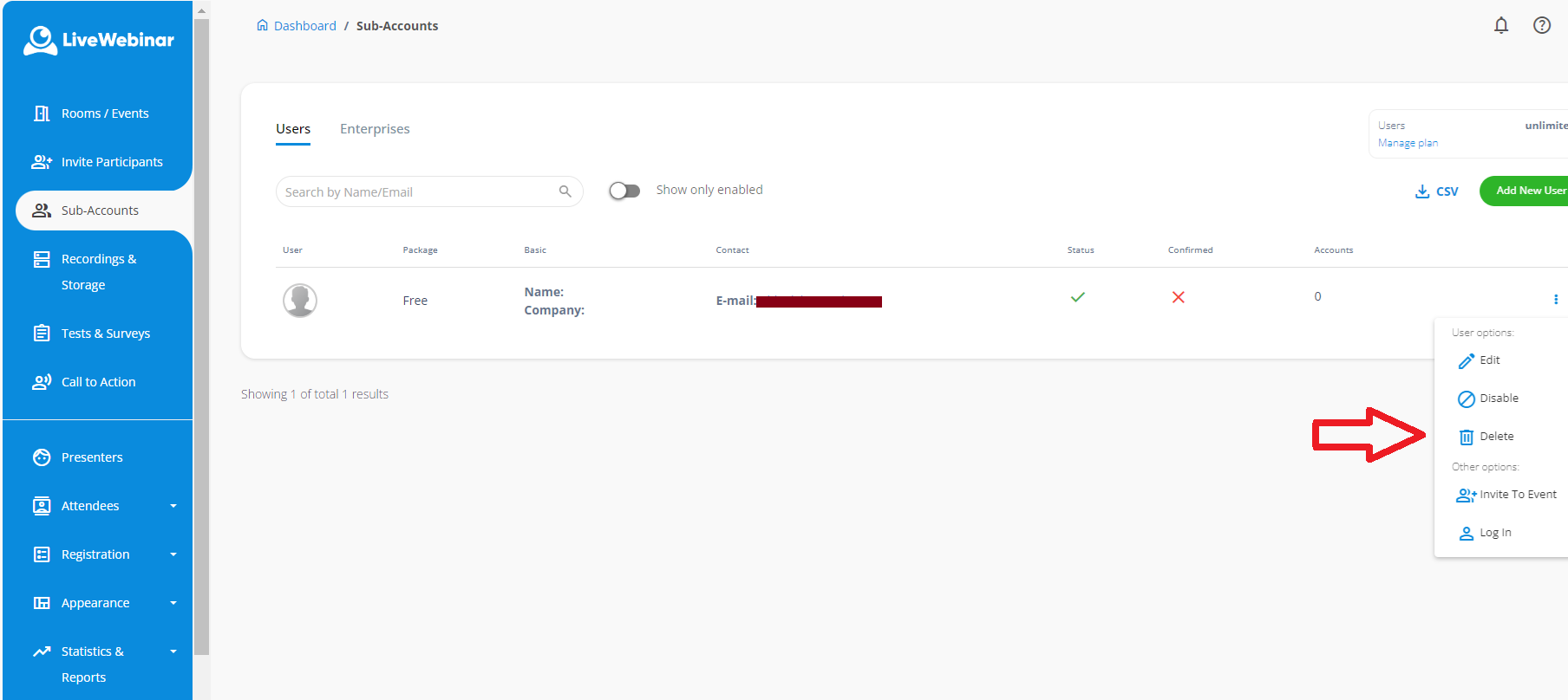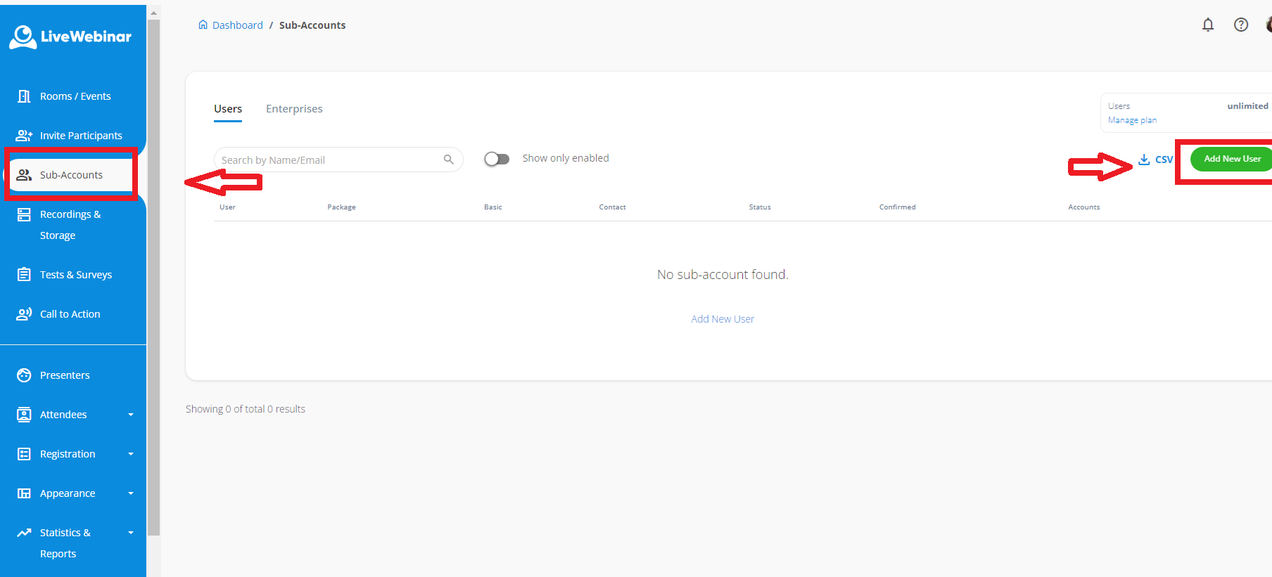 1. To create a sub-account, head to the sub-account tab under the main LiveWebinar menu. From there,
