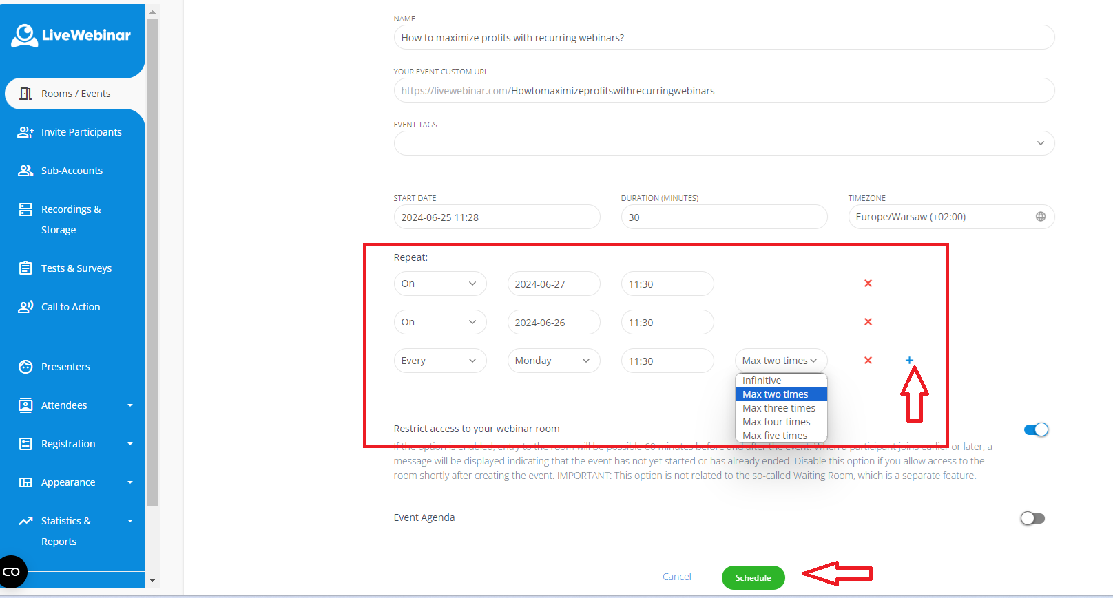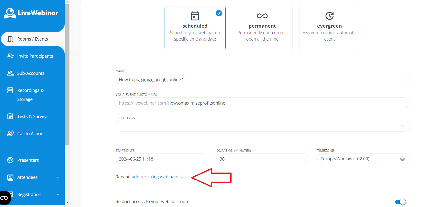 How to schedule a recurring webinar?