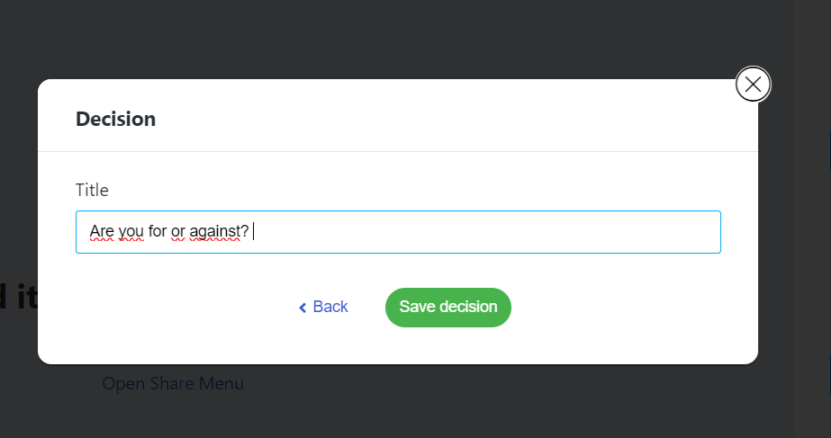Give your decision a title. This is the question you want your attendees to vote on.