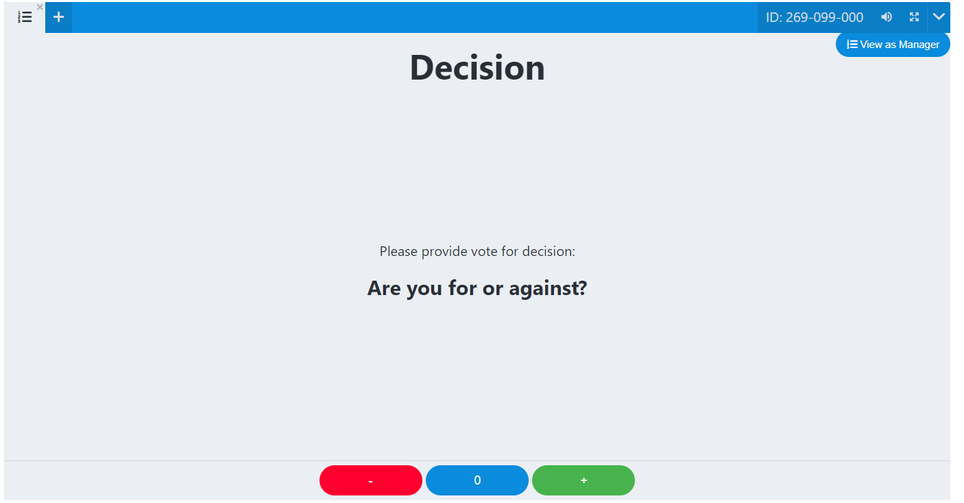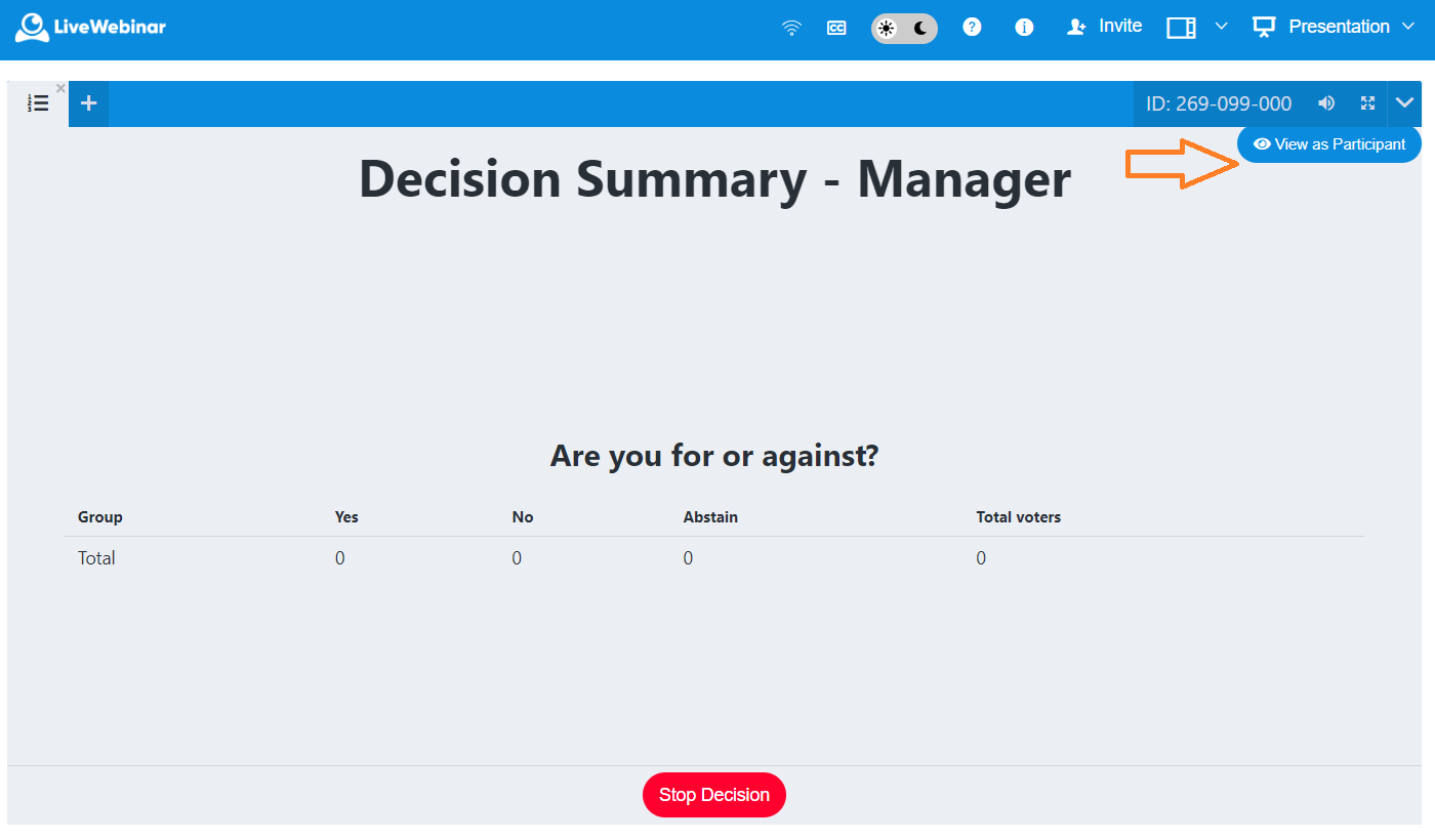 This is how you, as the room manager, will see the voting results. You can switch to the participant's view by clicking the icon in the upper right corner, as shown on the screen.