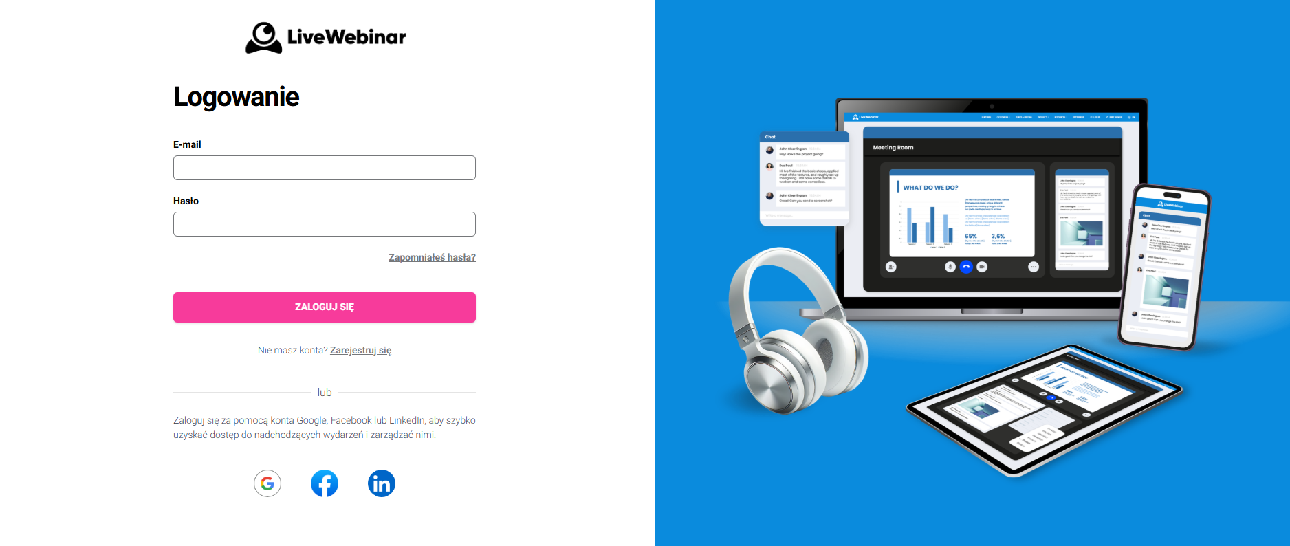1. Przejdź do strony logowania: https://app.livewebinar.com/auth/login?locale=pl