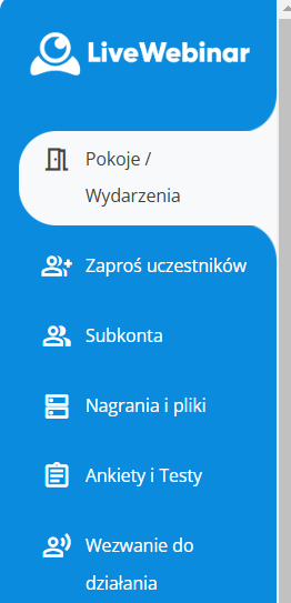 1. Zaloguj się do panelu swojego konta i wybierz zakładkę „Pokoje/Wydarzenia” w bocznym panelu.