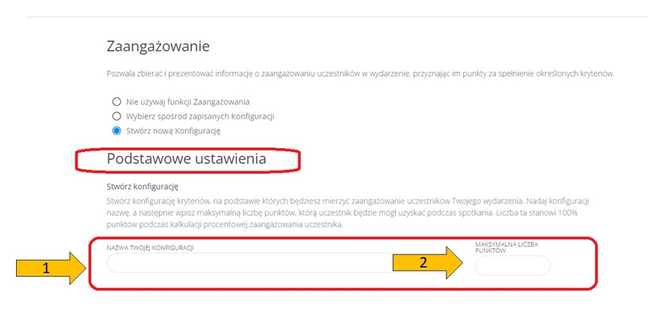 W tej sekcji możesz stworzyć kryteria Konfiguracji, które posłużą Ci do mierzenia zaangażowania uczestników Twojego wydarzenia.