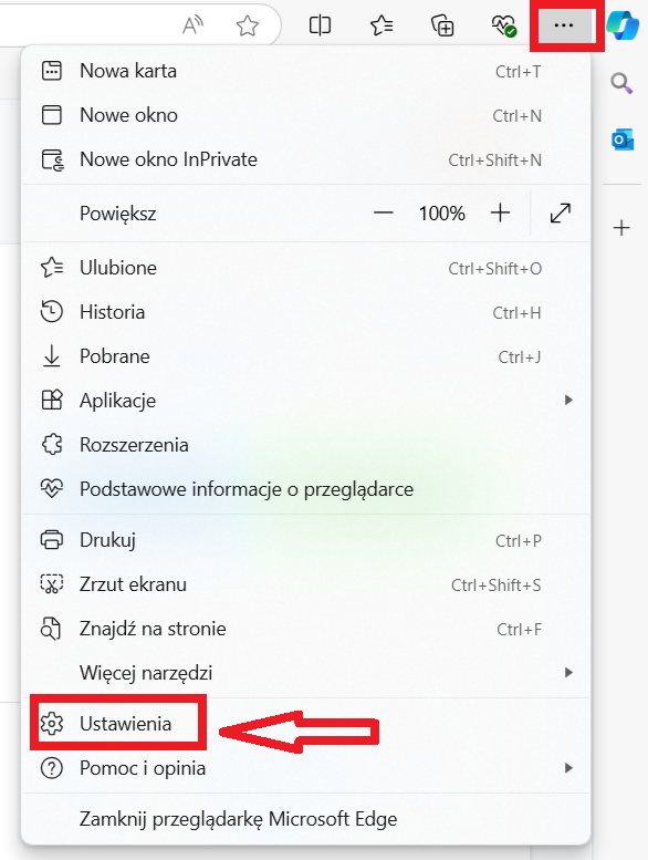 W prawym górnym rogu strony internetowej znajdziesz ustawienia preferencji przeglądarki (trzy kropki). Rozwiń listę i wybierz sekcję „Ustawienia”.