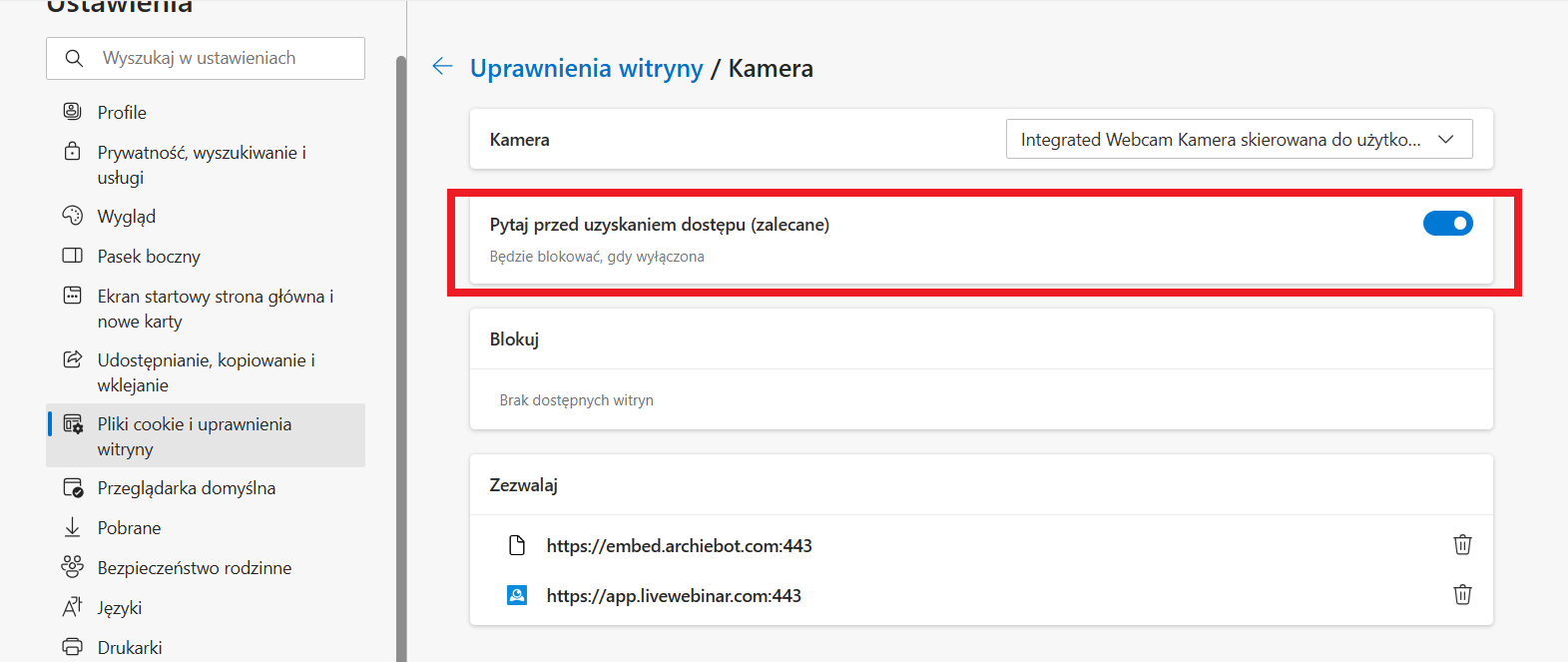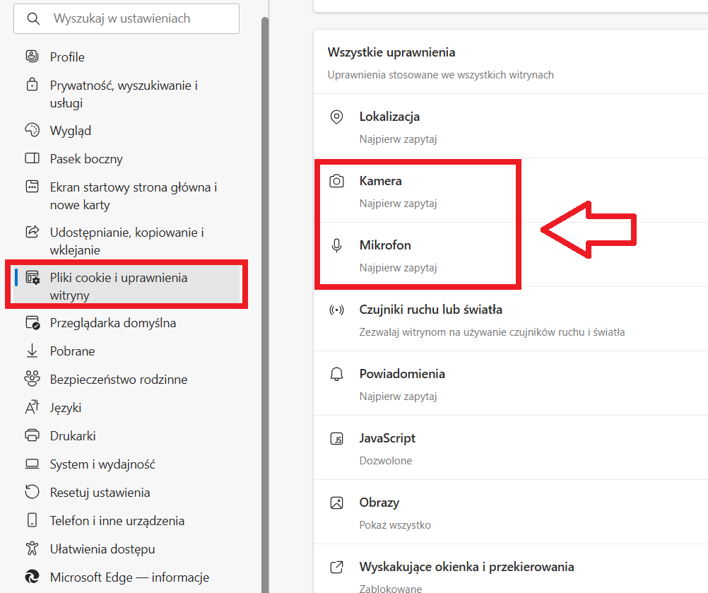 Jak odblokować kamerę i mikrofon w przeglądarce Edge?