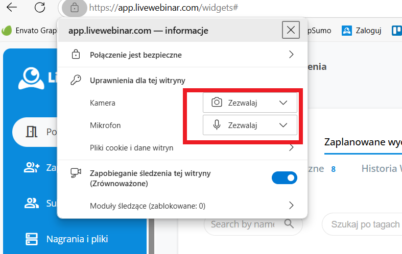 1. Sprawdź uprawnienia kamery i mikrofonu w ustawieniach przeglądarki