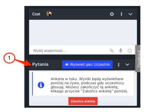 11. Rozpocznij jako mini ankietę – otwiera Ankietę w belce poniżej czatu (patrz Mini Okno Ankiety)