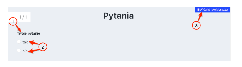 3. Widok Menadżera - gdy jesteś gospodarzem lub prezenterem, który rozpoczął ankietę możesz również zobaczyć ją jako Menedżer