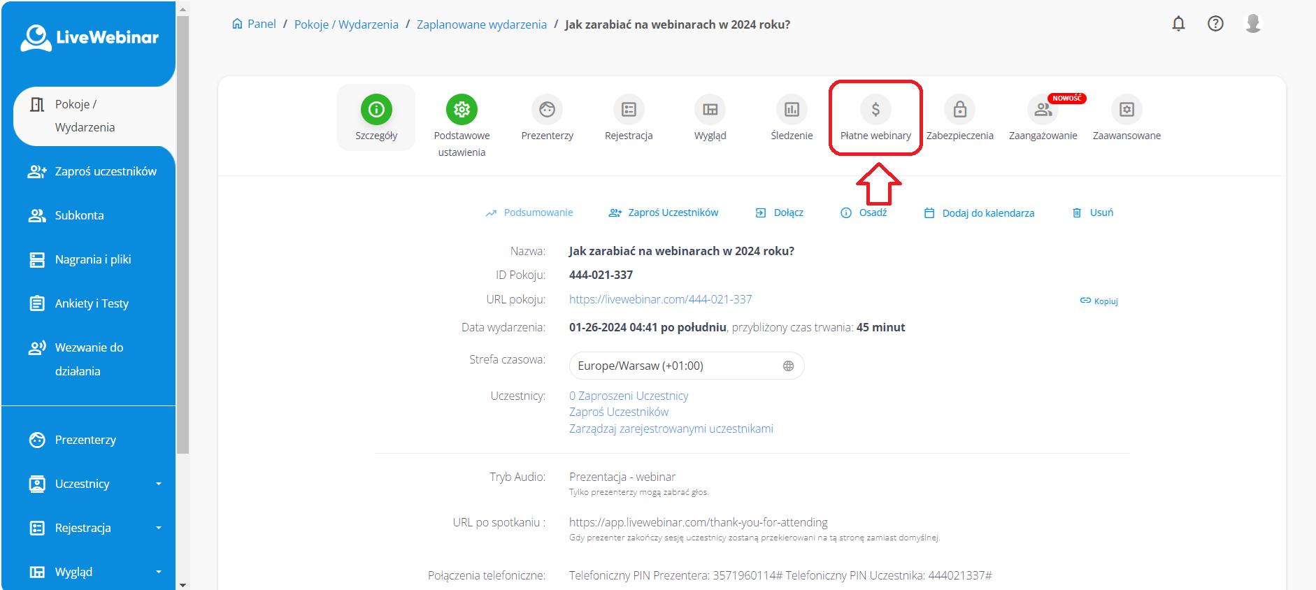 Jak utworzyć płatny webinar?
