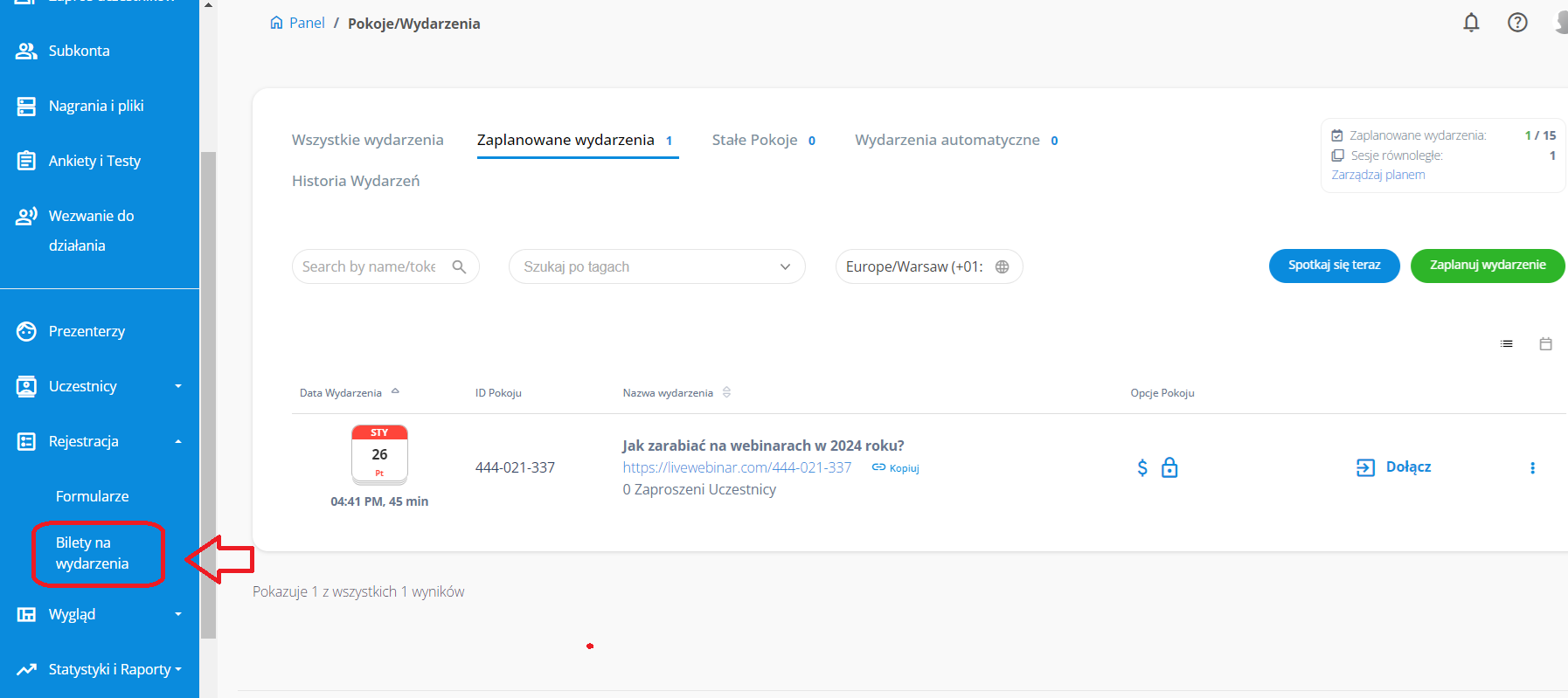 Często zadawane pytania -> Rejestracja -> Jak utworzyć płatny webinar?