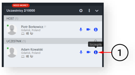 ikonę (1) „Szczegóły” tuż obok nazwy uczestnika w oknie „Uczestnicy”. A następnie zmienić