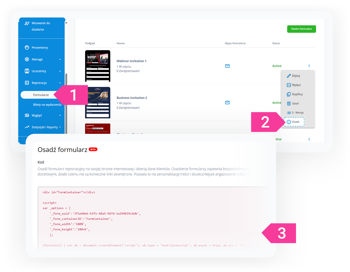 1. Wybierz formularz rejestracji dla swojego webinaru.