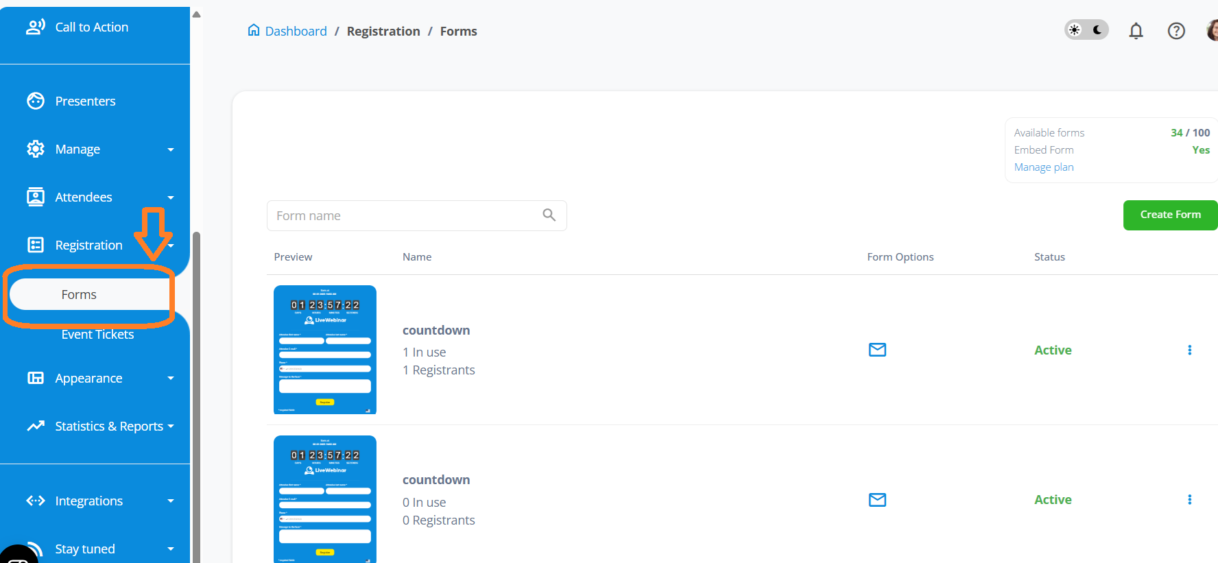 In LiveWebinar we have two types of forms – registration form and lead form. Both work similarly but should be used in different scenarios.