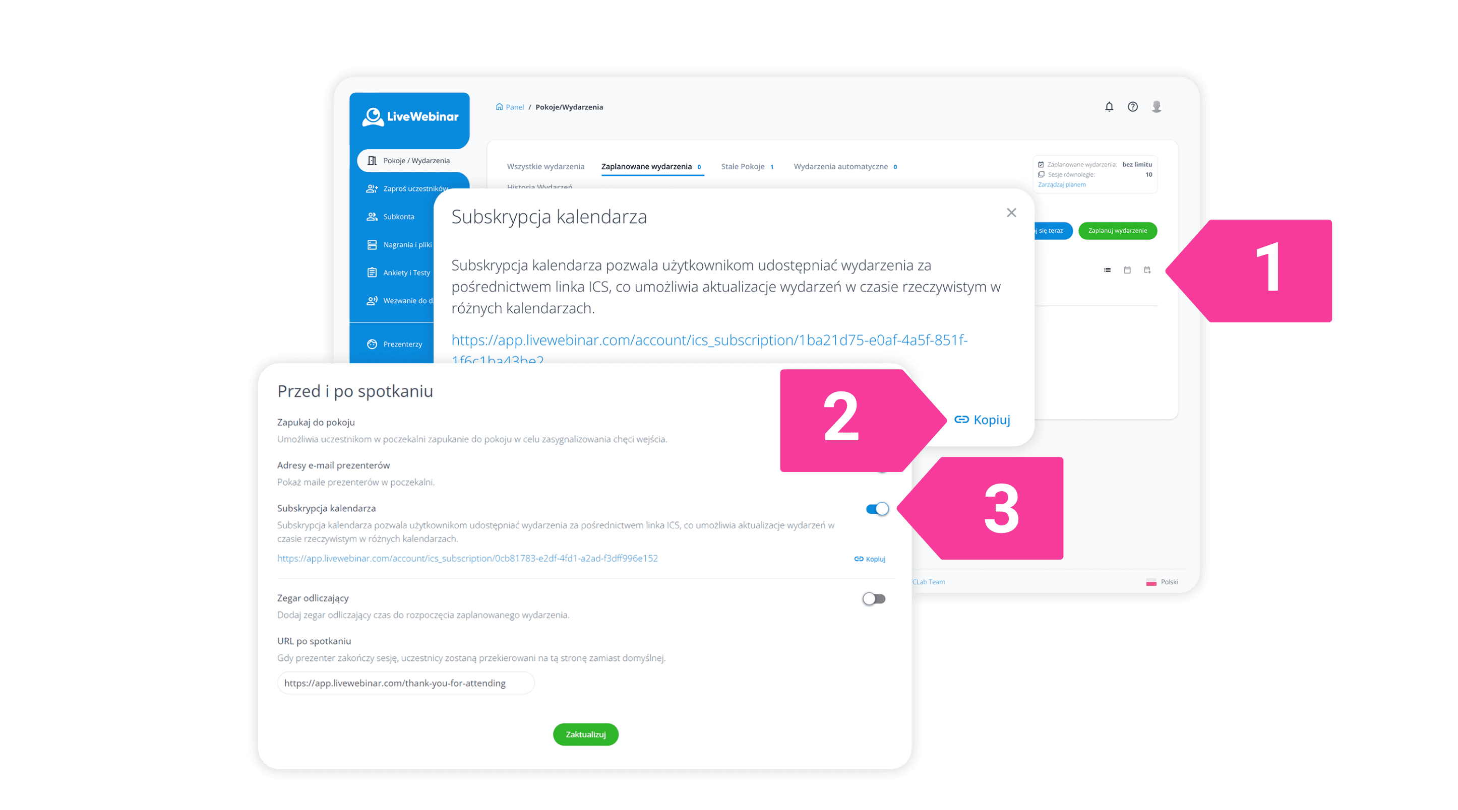 Jak użyć funkcji Subskrypcji Kalendarza w LiveWebinar?