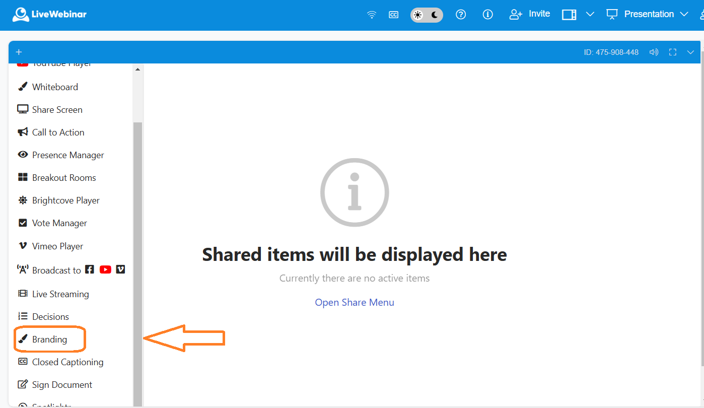 You’ll find the branding tool by clicking the “+” icon in the corner of your screen, or by clicking “Open Share Menu”. If you don’t immediately see the branding tool, you may need to scroll down a little.