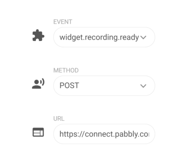 FAQ -> Pabbly Connect -> How to add Webhooks containing information about new recordings