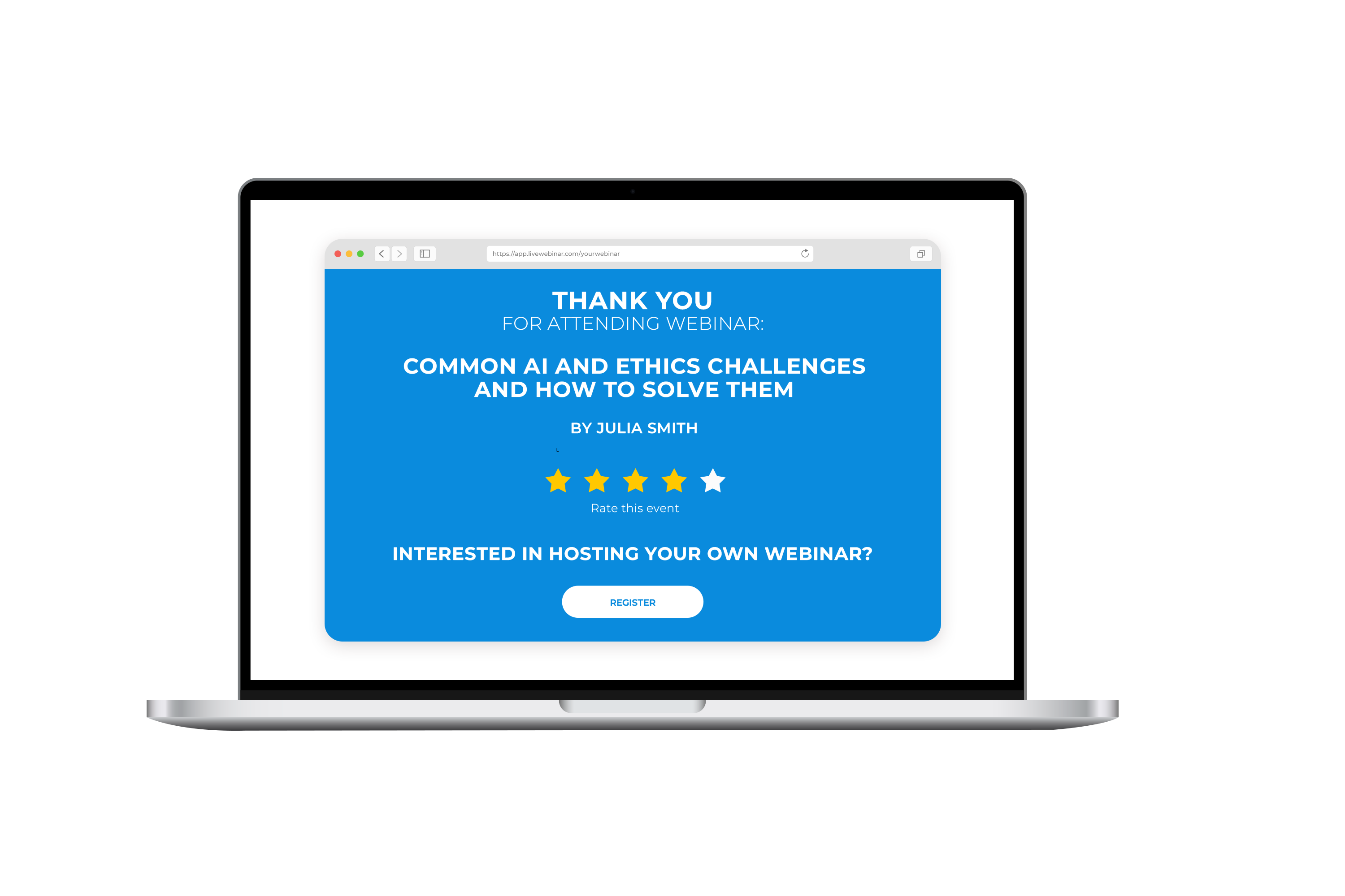 Once the webinar is over, a default Thank You page will be automatically displayed with a rating form. You can use this to collect insights from users, which will allow you to optimize future events.